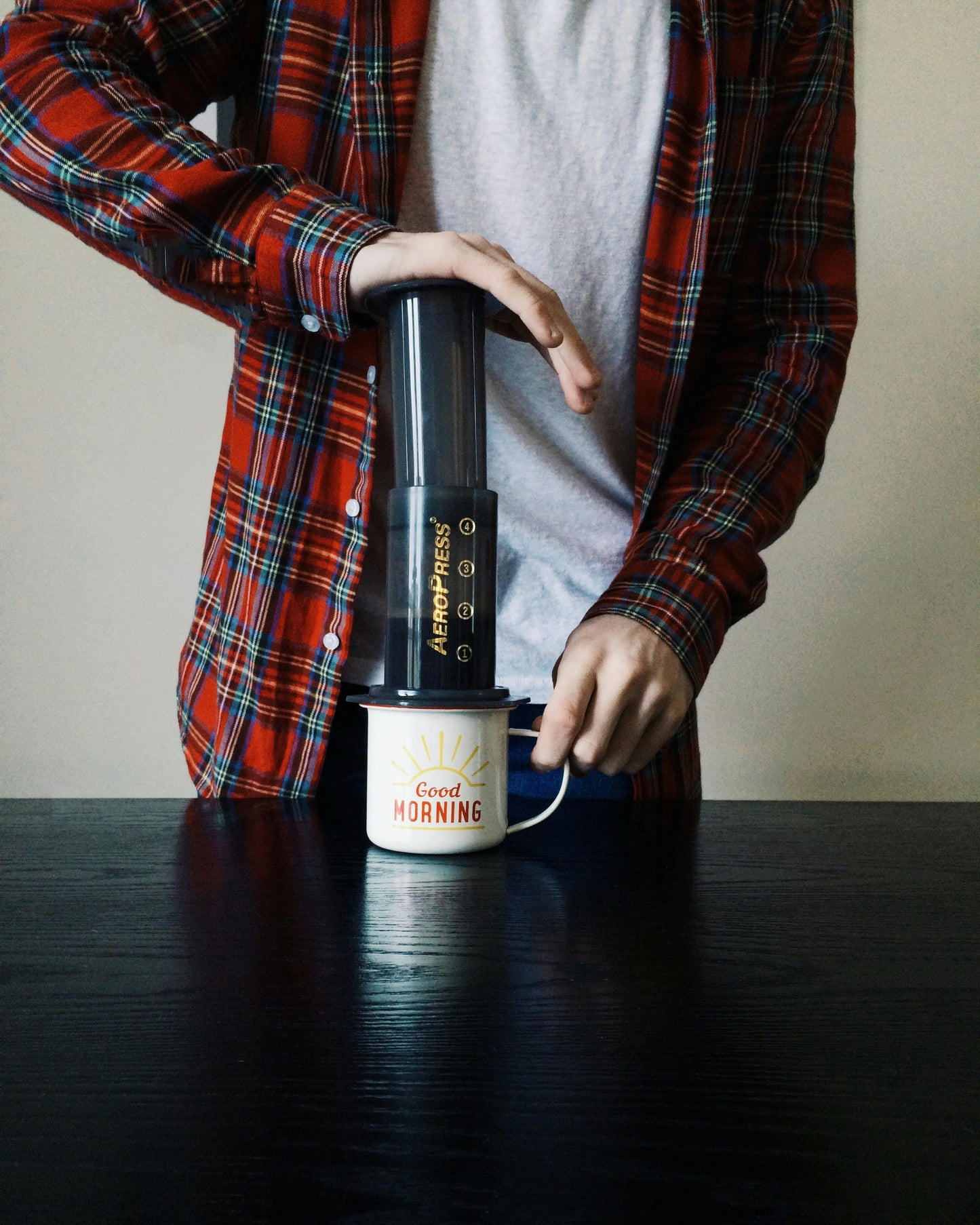 Aeropress is a manual coffee brewer making 1-3 cups of coffee at a time.